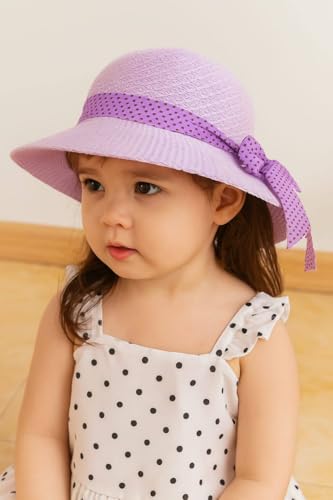 قبعه شاطئ بناتي صيفية بخامة طبيعية وخفيفة بها حزام ذقن لتثبيتها ومزينة بفيونكة سهله الارتداء للسن المحير من البنات