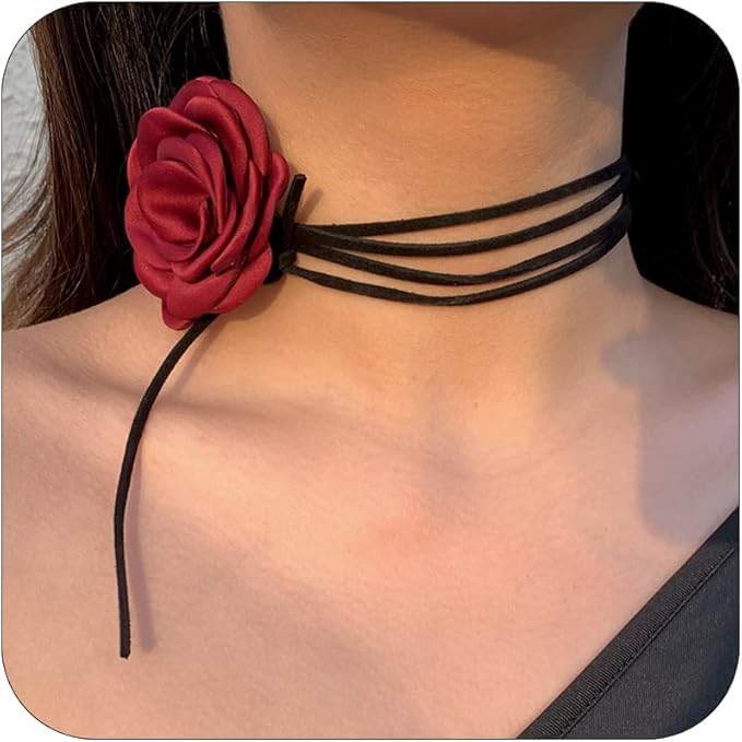 قلادة شوكر على شكل زهرة كبيرة من الزهور الاصطناعية، قلادة عنق عتيقة كبيرة على شكل زهرة للنساء
