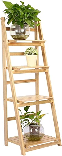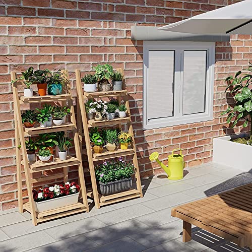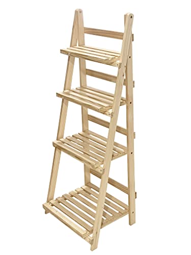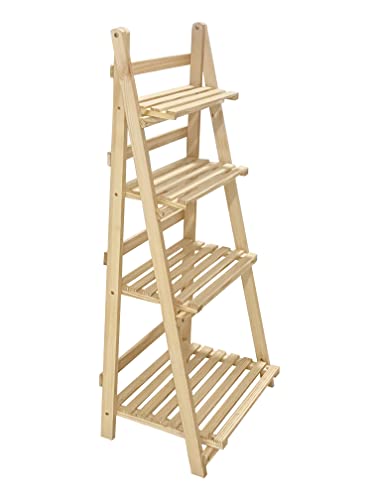 رف خشبي متعدد الوظائف قابل للطي حامل نباتات من سيام اكسبريس مكون من 4 طبقات، لأصيص الزهور وعرض الكتب والتخزين الداخلي والخارجي للمنزل والحديقة