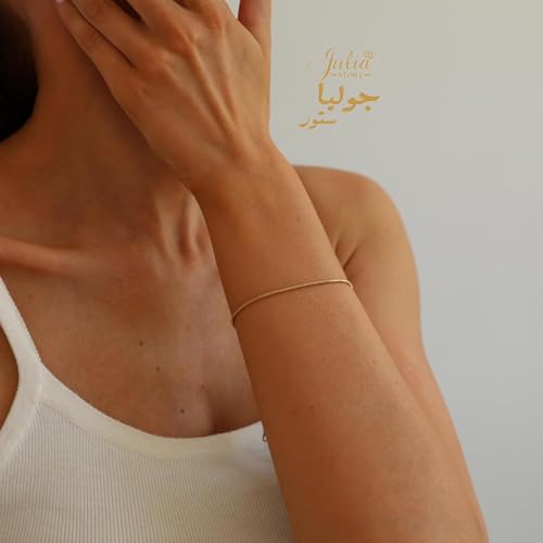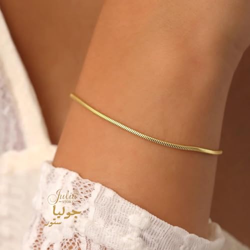 سوار من الستانلس ستيل المطلي بالذهب عيار 18 قيراط بتصميم عصري انيق الاكثر مبيعا على شكل ثعبان رقيق ومتعرج بسيط قابل للتكديس للنساء جوليا ستور