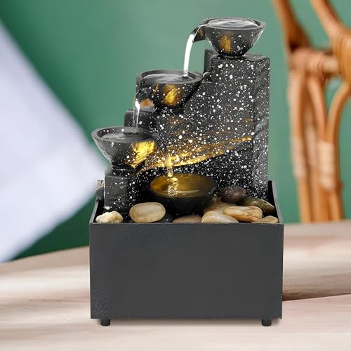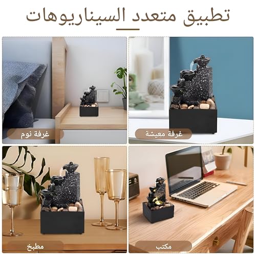 نافورة تأمل - شلال ليد صغير بأصوات مائية هادئة وإضاءة ناعمة، رائعة للديكور الداخلي والخارجي، سهلة التركيب، مثالية لتخفيف التوتر