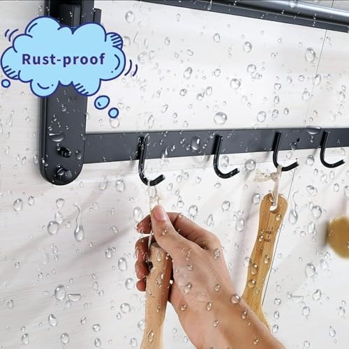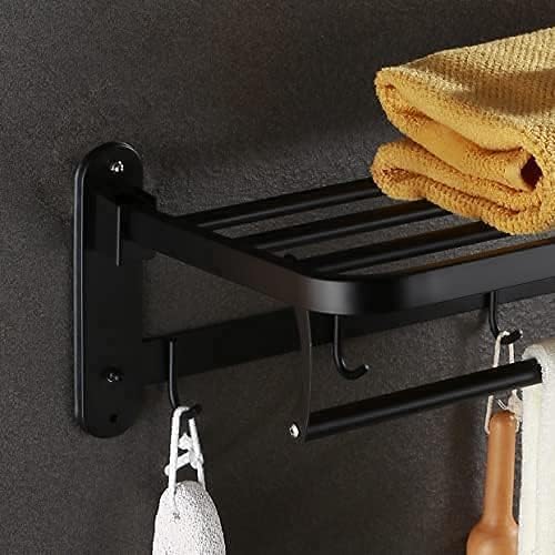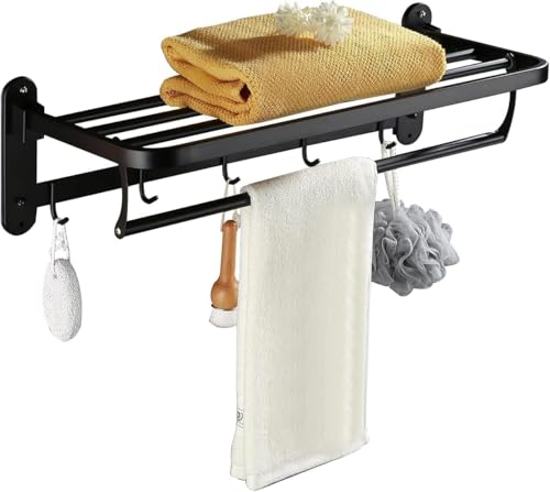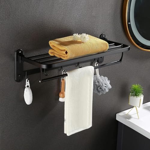 رف فوط، حامل فوط قابل للطي مع 5 خطافات من الفولاذ المقاوم للصدأ للتثبيت على الحائط، لون أسود
