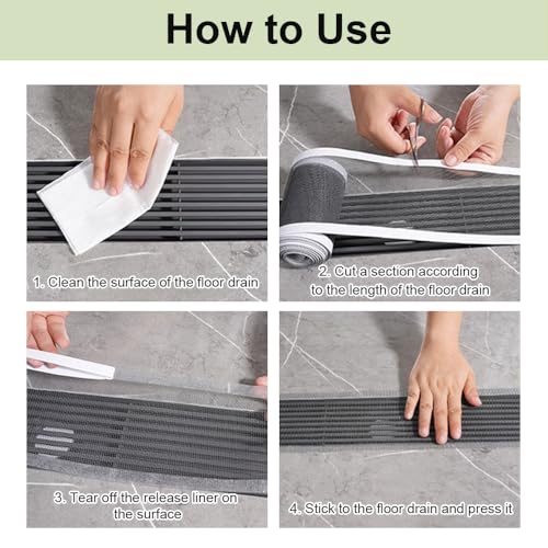 - تصميم يدوي ذاتي: سطح ملصق فلتر تصريف الأرضية مجهز بشريط لاصق على الوجهين. يرجى التأكد من أن الأرضية حول المصرف الأرضي جافة ومستوية قبل استخدامها. قم بإزالة الشريط ذي الوجهين وألصق فلتر تصريف الأرضية على الأرض.