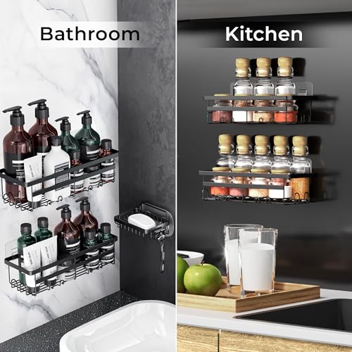 - لا توجد مساحة للرغوة ودش واحد - يوفر رف الحمام الخاص بنا مساحة كبيرة لجل الاستحمام. بالإضافة إلى ذلك، يضمن حامل ماكينة الحلاقة العثور على أدوات أخرى مثل الصابون أو ماكينة الحلاقة الرطبة أو حتى ممسحة الاستحمام في المكان المعتاد ودائمًا في متناول اليد.