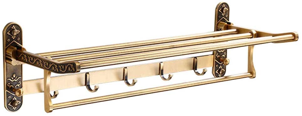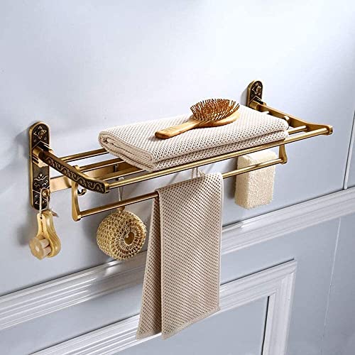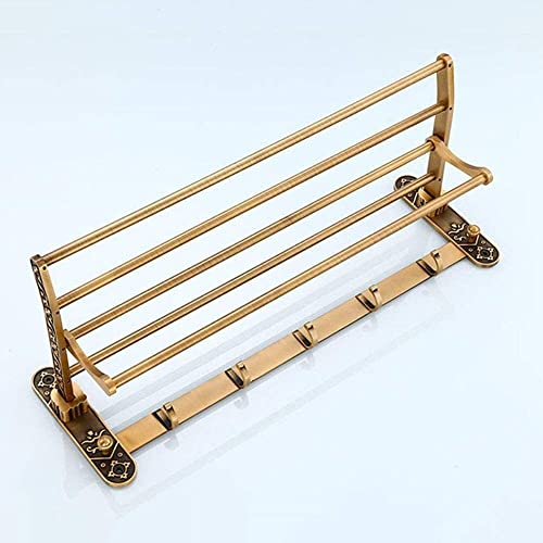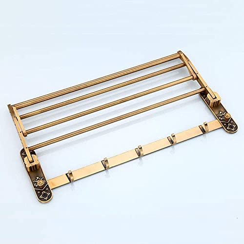 رف مناشف رترو منزلي قابل للطي من الألومنيوم يثبت على الحائط، متعدد الوظائف للحمام من ييرنتب (اللون: ذهبي)
