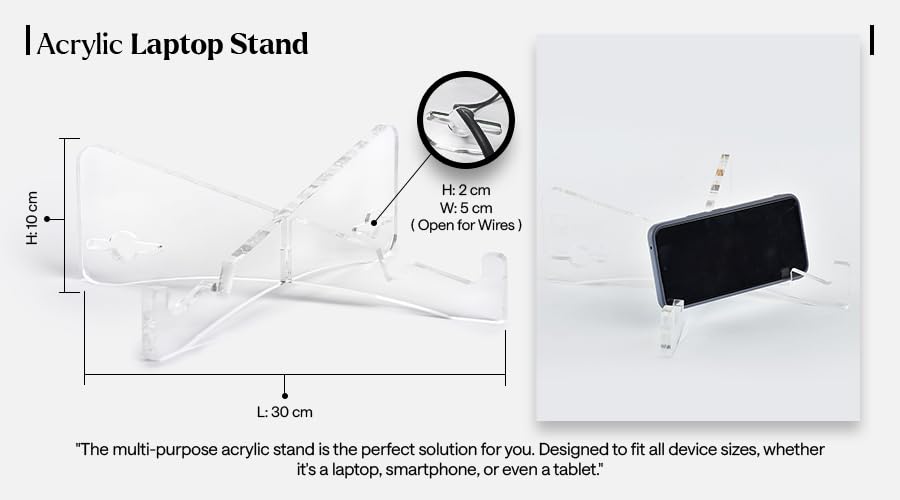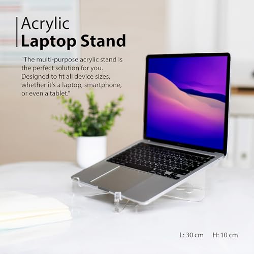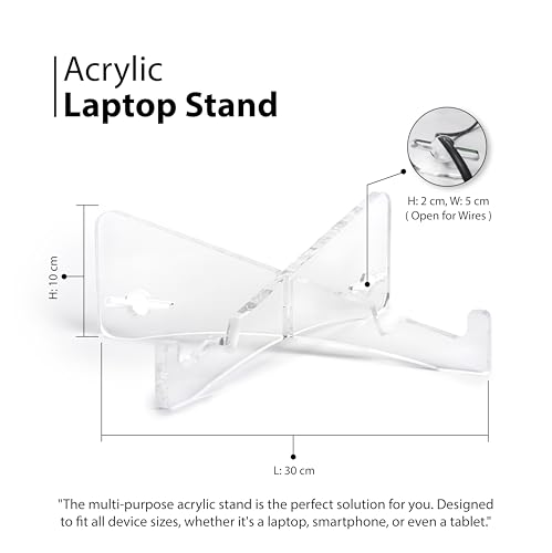 حامل لاب توب أكريليك شفاف - منظم مكتب لتحسين التبريد وراحة العين، يناسب جميع الأجهزة مقاس 10 × 30 سم، قاعدة متينة مضادة للانزلاق