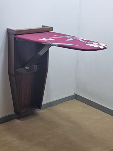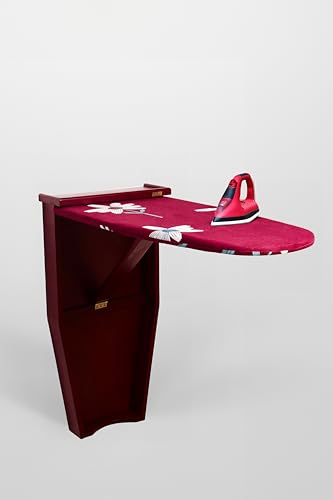 ترابيزة مكواة قلاب لون بنى مميزة مصنوعة من الخشب الزان الرومانى المجفف والمعالج بالاضافة الى الخشب الكونتر والقماش حرارى مشجر لون احمر