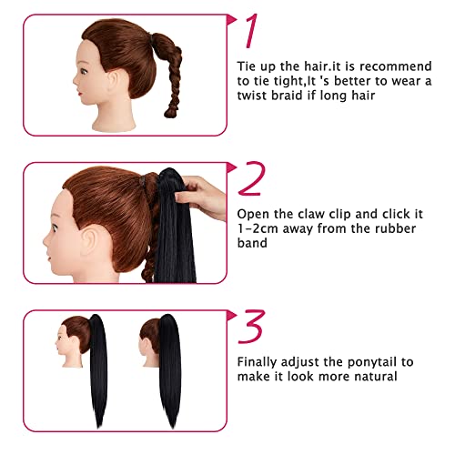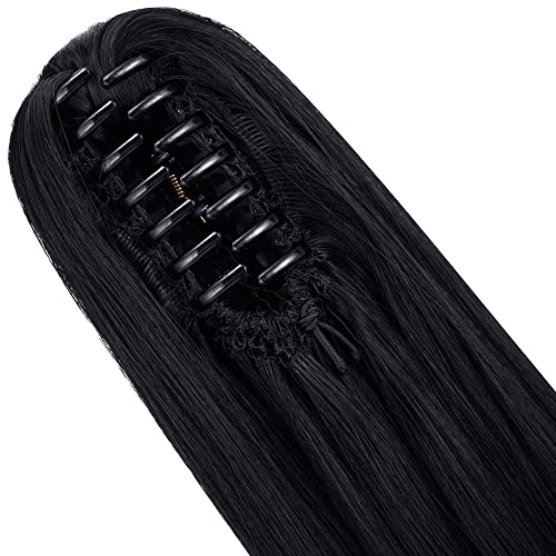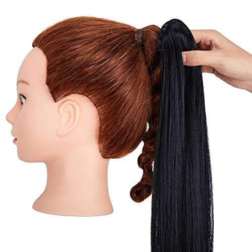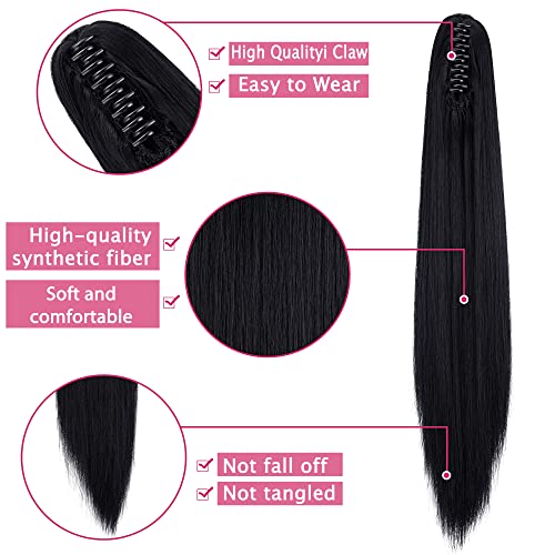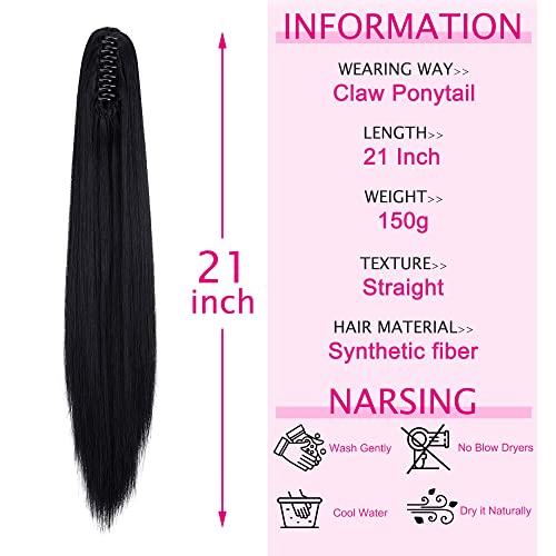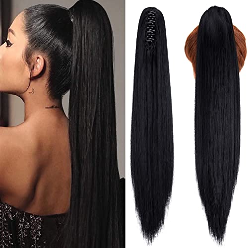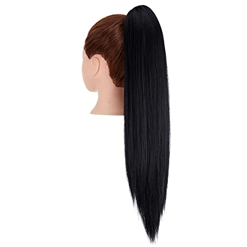 وصلة شعر صناعية بتصميم ذيل حصان طويل بقصة مستقيمة كثيفة مزودة بمشبك تثبيت من كولكيت، مناسبة للنساء والبنات، طول 21 بوصة، لون اسود غامق