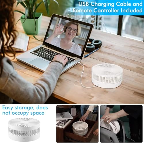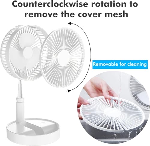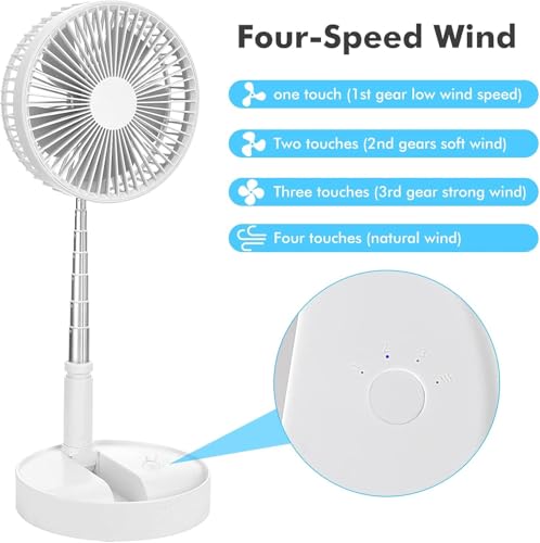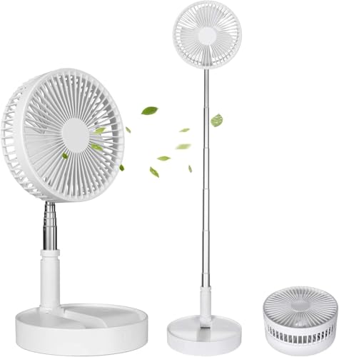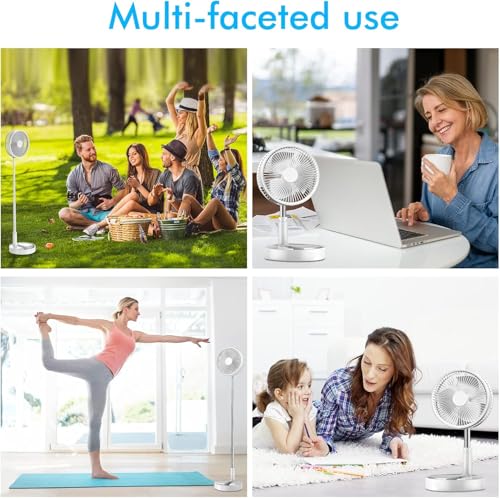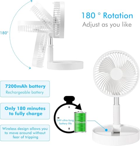 مروحة محمولة قابلة للطي بارتفاع قابل للتعديل – مروحة مكتب وأرضية تلسكوبية هادئة قابلة لإعادة الشحن مع بطارية 7200 مللي أمبير، 4 سرعات وتذبذب، للاستخدام المنزلي والسفر والتخييم (ابيض)