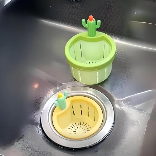 مصفاة بالوعة - مصفاة بالوعة بلاستيكية على شكل صبار مع باب سفلي مناسب لسهولة التخلص من النفايات والحطام في مطبخك أو حوض الحمام. (أخضر, 2 قطعه)