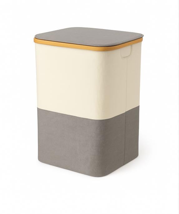 - تصميم أنيق: تتميز سلة الغسيل هذه بجزء خارجي أنيق من القماش الرمادي مع لمسات من الخشب الطبيعي لمظهر عصري وبسيط.