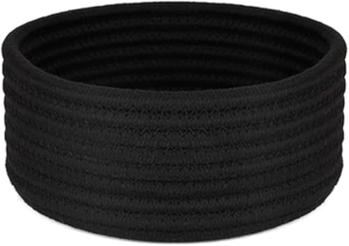 سلة منسوجة كبيرة سوداء ، سلة دائرية من الحبال القطنيةيصلح للالعاب والحضانة، متينة وسميكة للتخزين والحمام وغرفة المعيشة، 10.6 × 10.6 × 3.5 انش اسود من MZ
