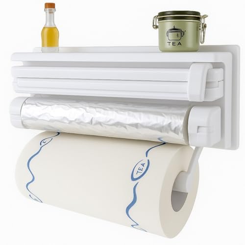 موزع ورق ثلاثي للمطبخ، حامل فويل وستريتش تغليف ومناديل، منظم متعدد الوظائف يثبت على الحائط، موزع مناديل بتصميم عصري للاستخدام المنزلي، NO-5821