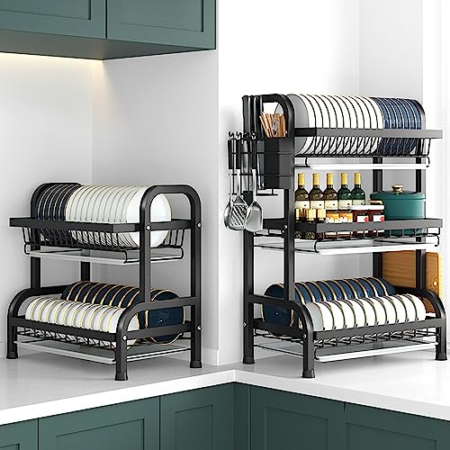 - 【مضاد للصدأ يدوم طويلاً】رف تجفيف أطباق المطبخ عملية طلاء الخبز الأسود الكلاسيكي، يمنع بفعالية رف أطباق المطبخ الصدأ، أسهل في التنظيف، المظهر الأسود يمكن أن يتطابق تمامًا مع مجموعة متنوعة من أنماط المطبخ