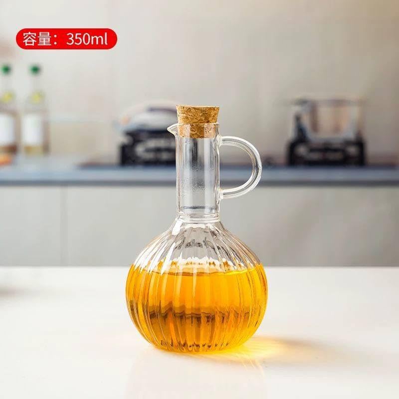 زجاجة موزع زيت زجاجية بسدادة فلين كبيرة للخل وصوص الصويا والشراب وزيت الزيتون والسلطة والماء سعة 350 مل
