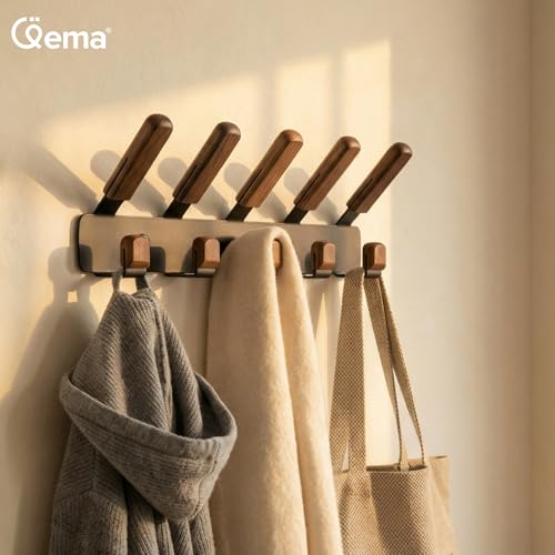 شماعة معاطف حائط أو باب – تصميم متين وأنيق – 10 خطافات – أسود – خشب طبيعي ومعدن قوي – مقاومة للماء – للمداخل والحمام