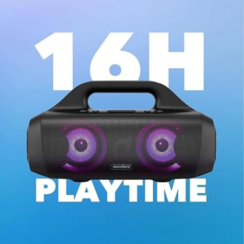 مكبر صوت ساوند كور سيليكت برو من انكر بلوتوث خارجي مع تقنية باس اب مقاوم للماء بدرجة IPx7 وقت تشغيل 16 ساعة تطبيق مصابيح LED مدمجة h≤ محمول للاستخدام الخارجي