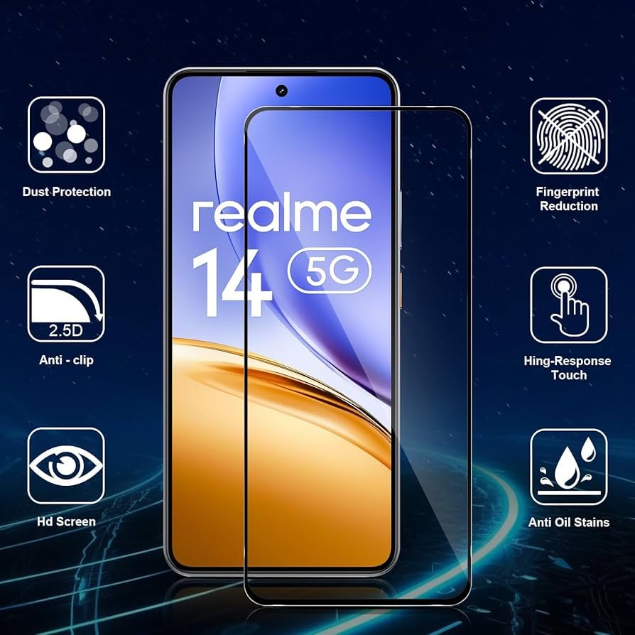 - 【الموديلات المتوافقة】شاشة حماية مصممة لموبايل ريلمي 14 شبكة الجيل الخامس 5G فقط، يرجى التأكد من موديل موبايلك قبل الشراء.