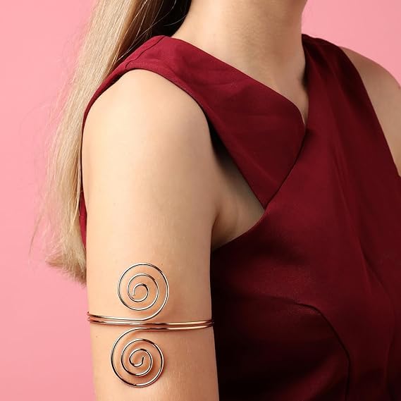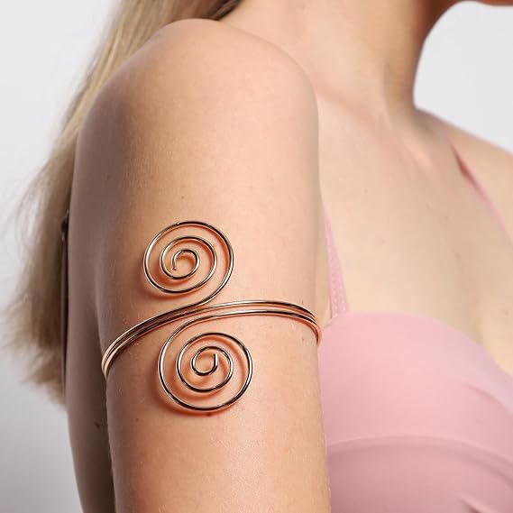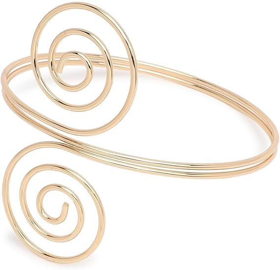 سوار معصم حلزوني علوي للذراع، تصميم دوامة مزدوجة بلون ذهبي، قابل للتعديل