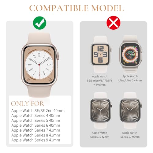 - 【الموديل المتوافق】مناسب تمامًا لساعة آبل 40 ملم 41 ملم SE/سلسلة 9/8/7/6/5/4. من المهم جدًا التحقق من الموديل الخاص بك، يرجى الانتباه قبل الشراء.