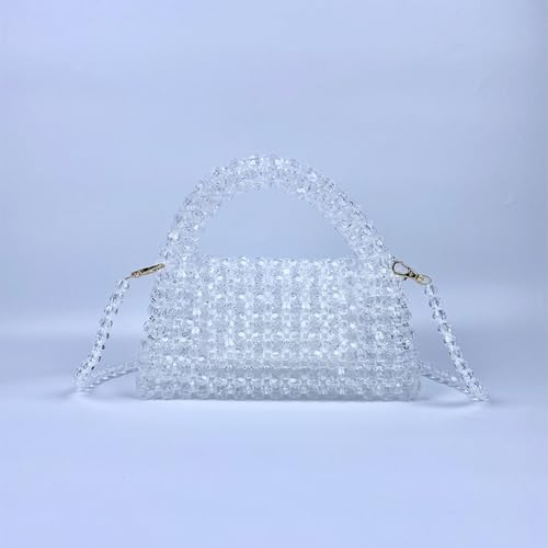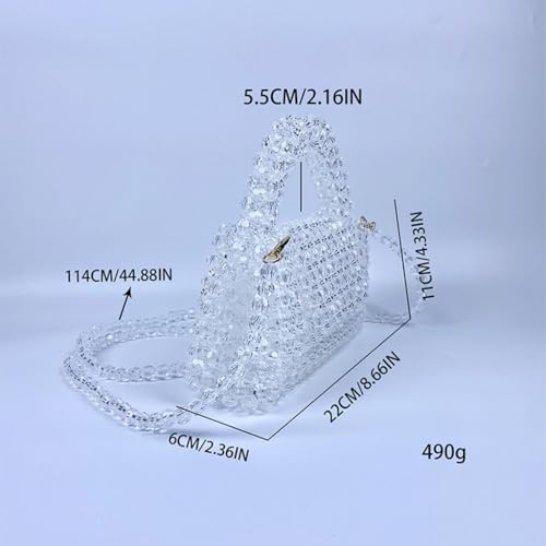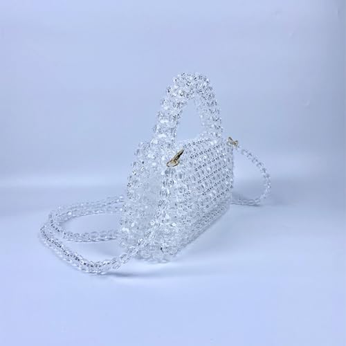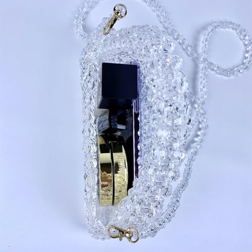 دي جي بي ام محفظة نسائية شفافة من الاكريليك الفاخر مزينة بالخرز، شنطة كروس مصنوعة يدويا من اللؤلؤ لحفلات الزفاف والمواعدة