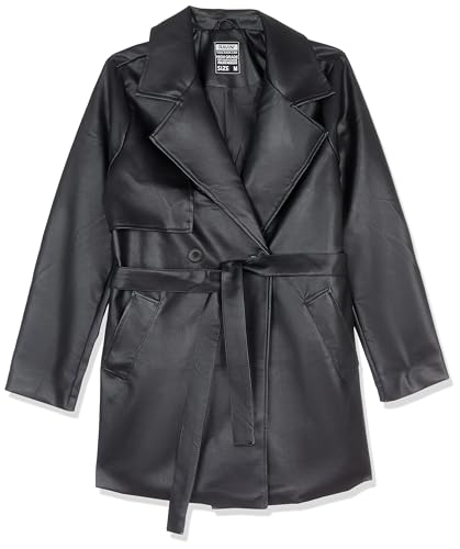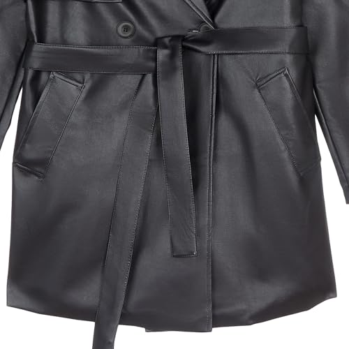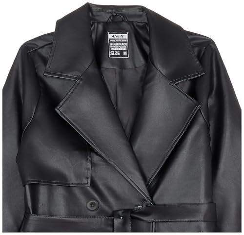 جاكيت جلد بأكمام طويلة وحزام للنساء من ريفين - جاكيت أسود للنساء
