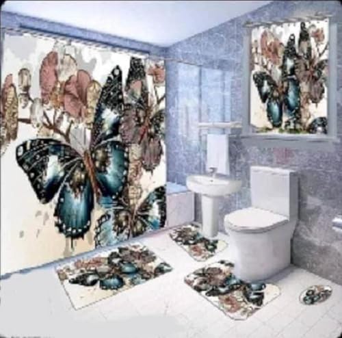 طقم حمام بالستارة 3D خامة ثقيلة 5 قطع رسمه 772