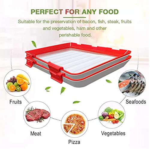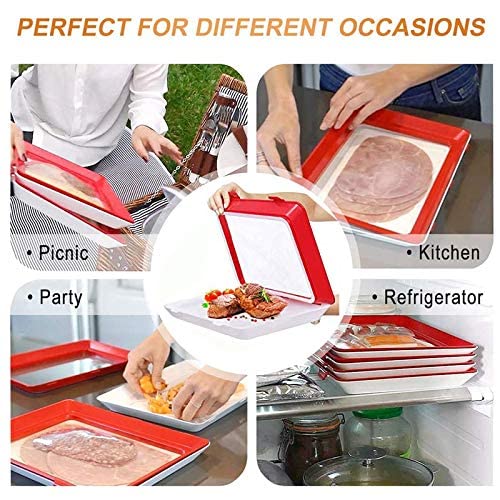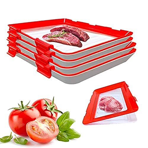 صينية بلاستيك لحفظ الطعام باحكام بتقنية تفريغ الهواء، صواني قابلة للرص فوق بعضها وقابلة لاعادة الاستخدام، لتخزين الطعام الطازج مثل الفواكه والخضروات واللحوم وفي المطبخ والمكتب (عبوة من 4 قطع)