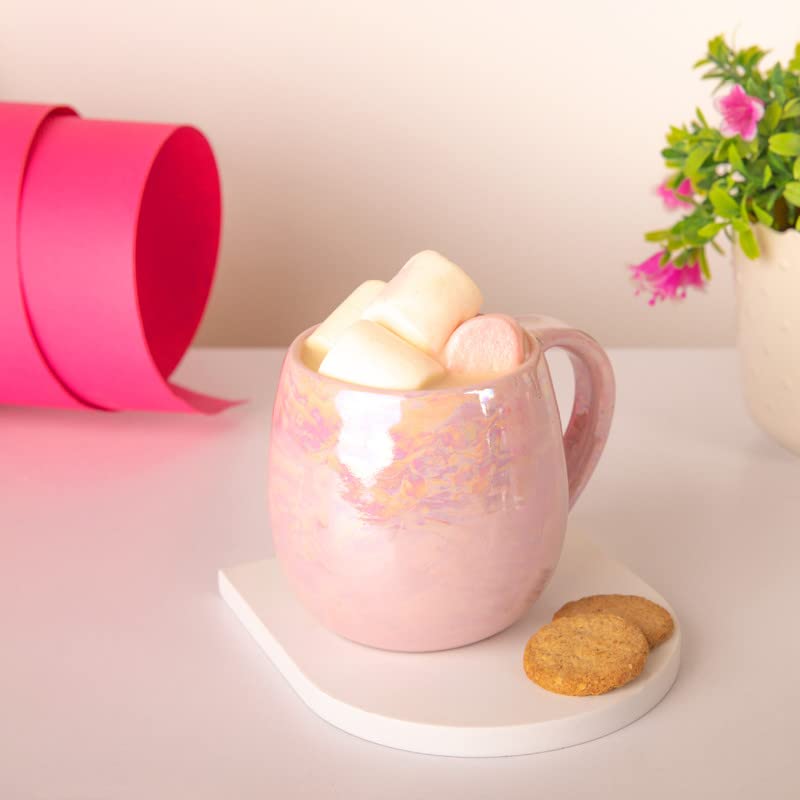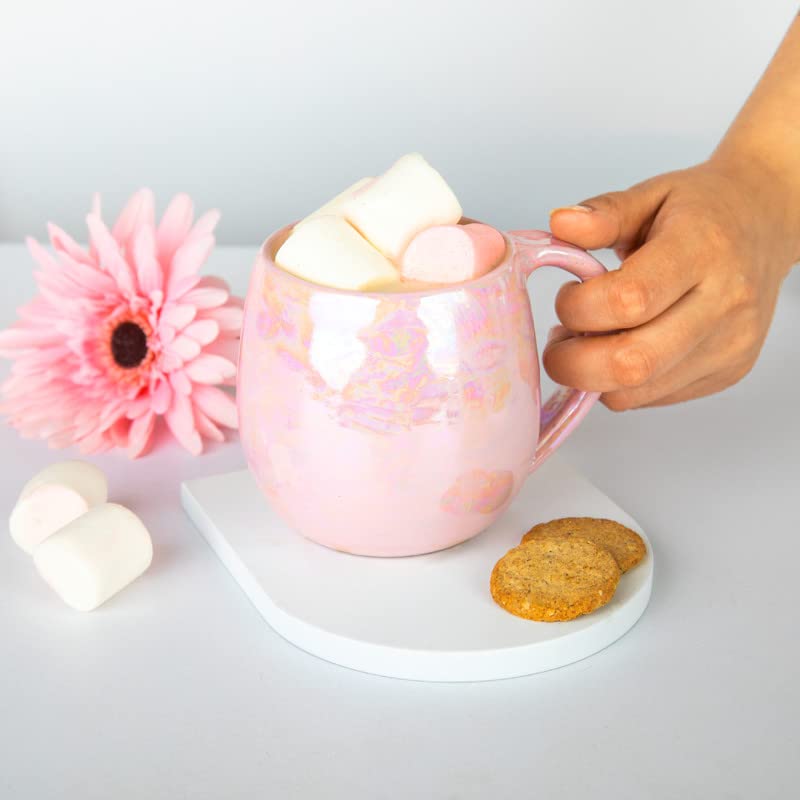 مج بتصميم منحني يدوي من تيب اوف ذا داي 300 مل بينك، بورسلين، زهري