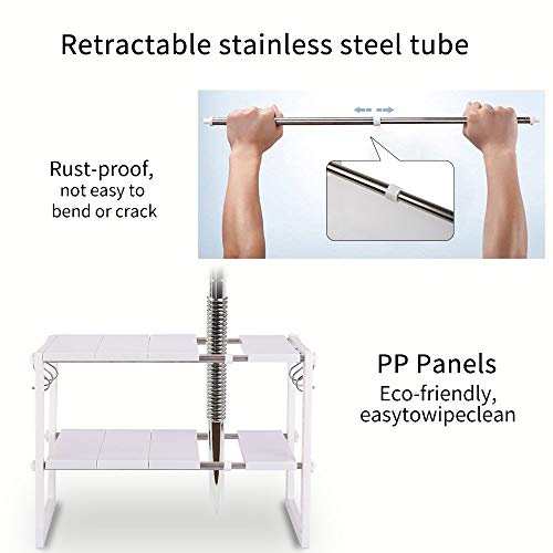 قطعتان من منظم اغراض قابل للتوسيع للحوض سمونتر مكون طبقتين رفوف للتعديل مع 10 الواح قابلة للازالة وانابيب الستانلس ستيل خطافات رف تخزين متعدد الوظائف الألوان