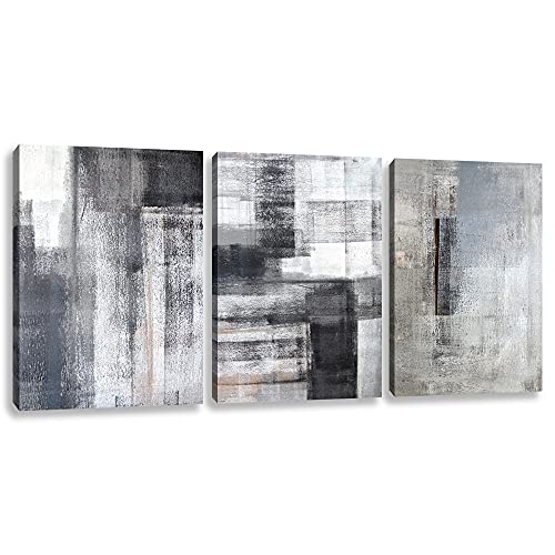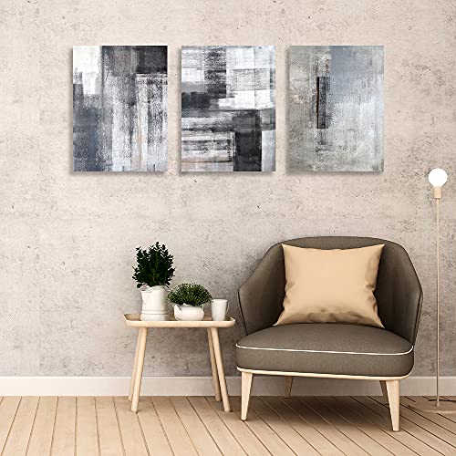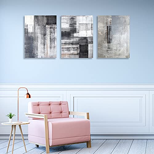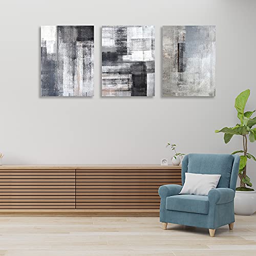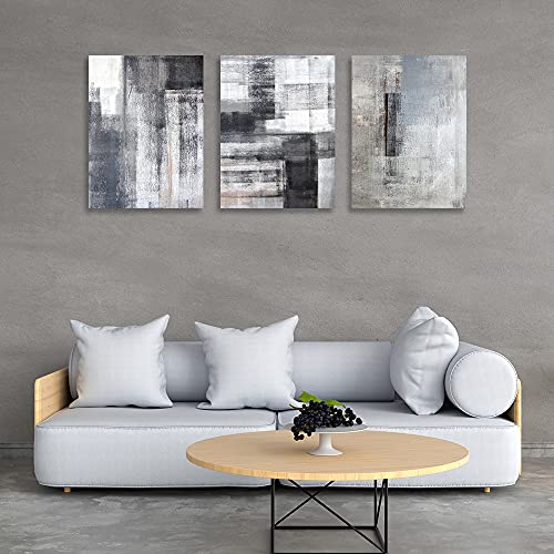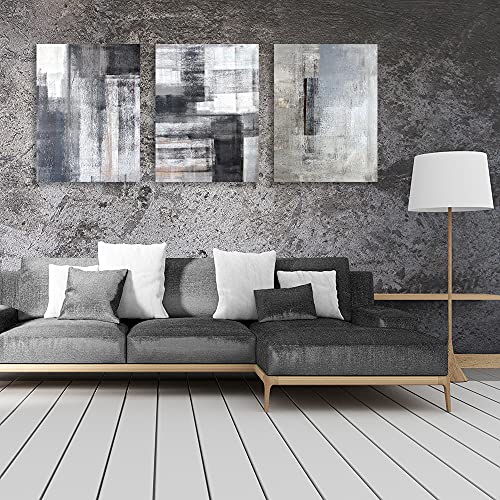 لوحة فنية جدارية تجريدية باللونين الاسود والابيض والرمادي 3 الواح قماشية مطبوعة للمكتب وغرفة النوم المعيشة والمطبخ مؤطرة 16 انش × 24 قطع