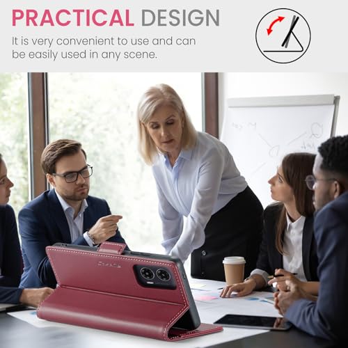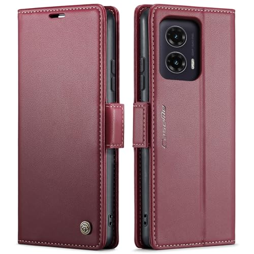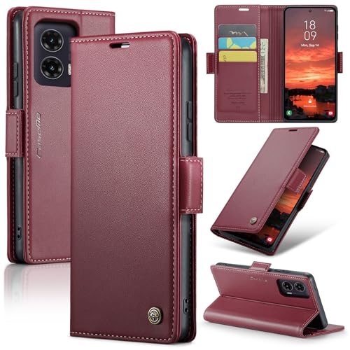 جراب موبايل مصنوع من جلد صناعي بغطاء قلاب وفتحات للكروت متوافق مع موبايل موتو G35 من انبلاك - 023 (أحمر)
