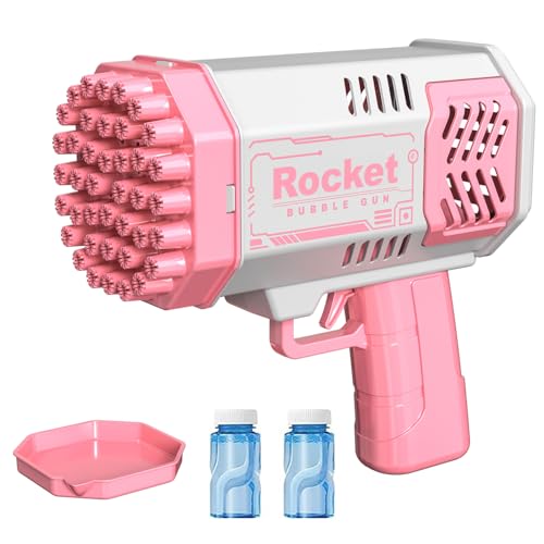 مسدس فقاعات، مسدس فقاعات بازوكا به 40 فتحة، مسدس فقاعات كهربائي، مزوّد بزجاجتين من سائل الفقاعات، ألعاب خارجية للأطفال من عمر 4-8 سنوات (وردي × 1)
