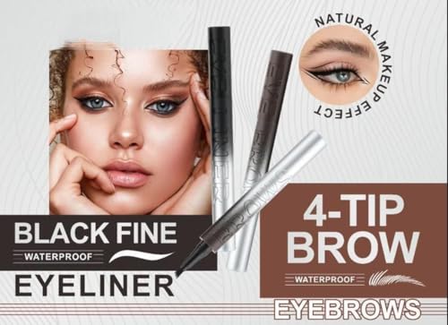 قلم تحديد حواجب سائل بلاك+ من ايلاينر، قلم حواجب مايكروبليدينج مقاوم للماء مع اداة توزيع بطرف شوكة مايكرو، يخلق حواجب بمظهر طبيعي بدون مجهود، لون بني