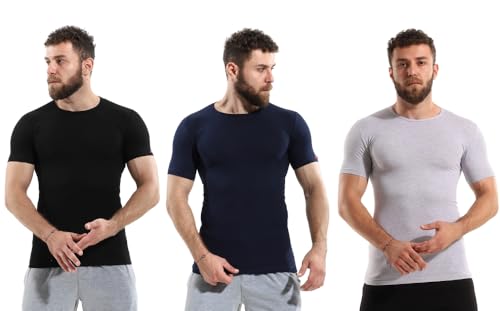 طقم فانلة قابلة للتمدد للرجال بتصميم عصري ورقبة دائرية على شكل حرف O من قطونيل (عبوة من 3 قطع)