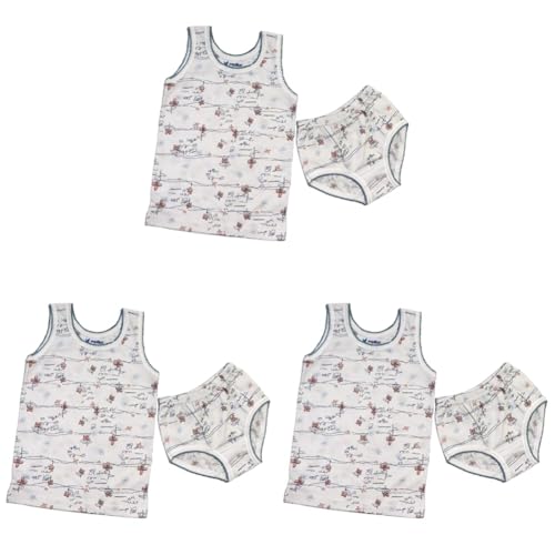 فانلة بدون أكمام وبانتي من القطن بطباعة زهور للبنات طقم من قطعتين من بابيون، بلون أبيض وأزرق فاتح، لعمر 12 سنة، (عبوة من 3 قطع)