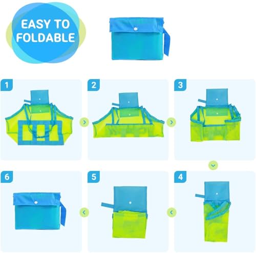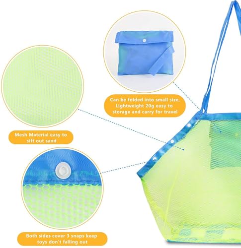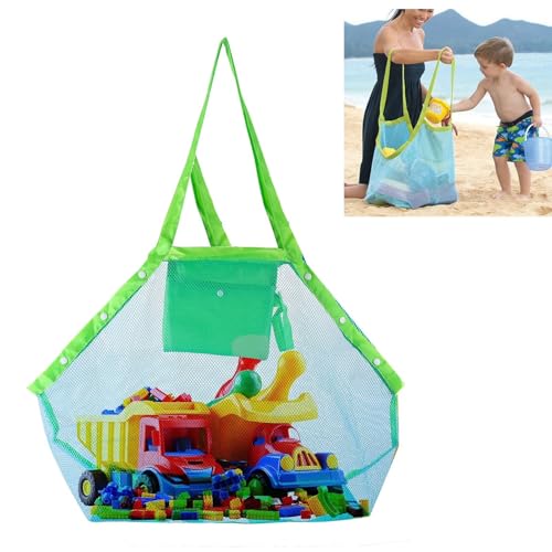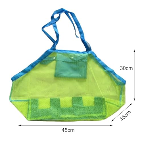 - تصميم شبكي: مصنوعة من نسيج شبكي متين باللون الأخضر والأزرق، يسمح بتصفية الرمال بسهولة