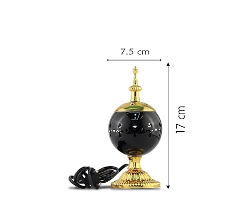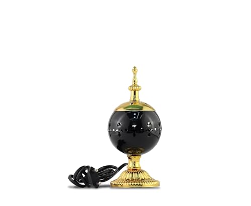 مبخرة كهربائية معدنية عربية بتصميم عتيق بطابع خاص بالشرق الأوسط مناسبة للعود العربي وديكور المنزل والفندق - (أسود وذهبي)