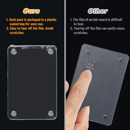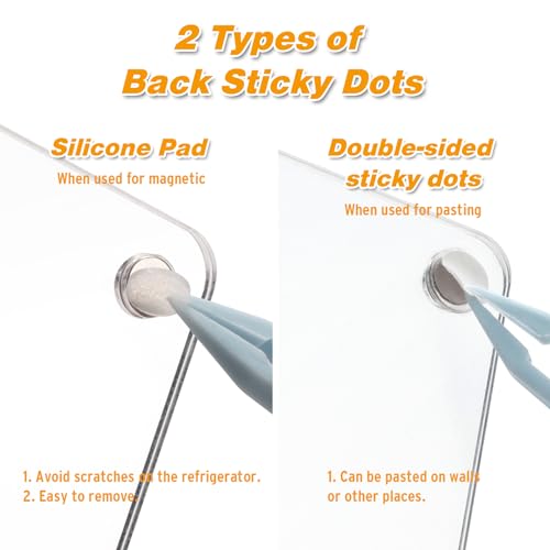 - مصمم بمغناطيس قوي ولاصق: برواز الصورة الاكريليك يمكن أن يتم تثبيته مغناطيسيًا أو عن طريق اللصق. مصمم بـ4 أزواج من المغناطيسات القوية تثبت بإحكام لوحتين من الاكريليك الشفاف والصورة. يمكنه تثبيت الصورة بإحكام على الثلاجة أو أي سطح معدني دون أن تسقط. الصق وسادة السيليكون المرفقة على المغناطيس لتجنب خدش الثلاجة. يمكن للنقاط اللاصقات مزدوجة الأوجه لصق برواز الصورة بإحكام على أي سطح مثل الجدران أو الألواح الخشبية دون أن تسقط. نوفر كميات كافية من وسادات السيليكون والنقاط اللاصقة مزدوجة الأوجه التي يمكن استبدالها.