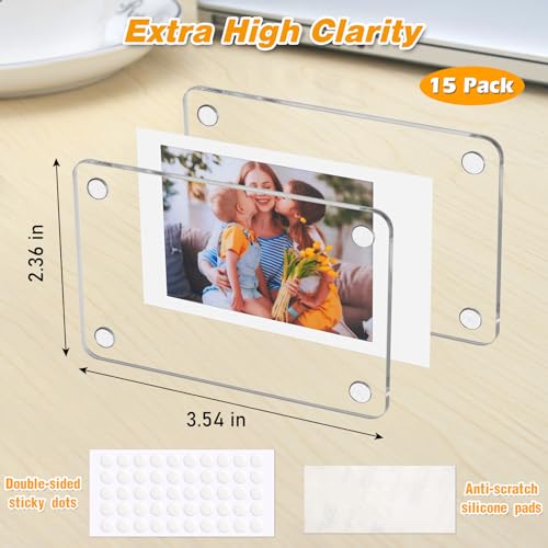 إطار عرض صور مغناطيسي للثلاجة من الاكريليك، برواز صور شفاف مزدوج الجوانب للثلاجة مناسب لصور فوجي فيلم انستاكس ميني من سوانزلجو، 15 قطعة، 6 × 9 سم