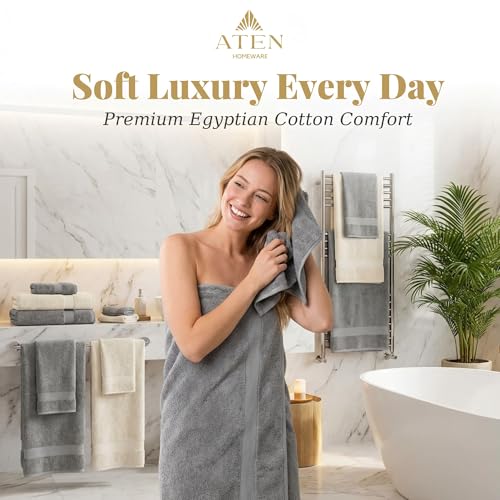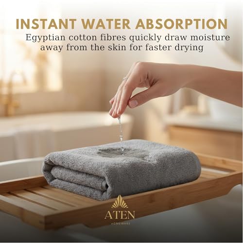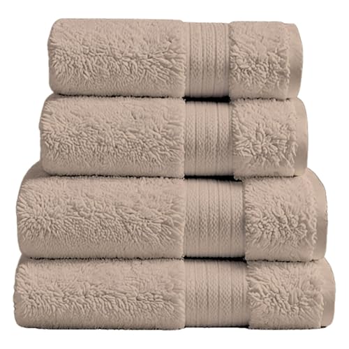 مجموعة فوط حمام من القطن المصري سوبريم من اتين هوم وير، مجموعة من 4 قطع مع 2× فوطة حمام كبيرة و2 × فوطة يد، فائقة النعومة، عالية الامتصاص، معتمدة من اويكو-تكس، صنعت في مصر (كافيه)