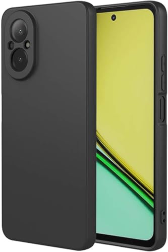 جراب حماية خلفي متوافق مع موبايل Realme C67 ، مصنوع من جل السيليكون الناعم والمطاط مضاد للصدمات بلمسة نهائية غير لامعة وبطانة داخلية القماش للكاميرات (أسود)