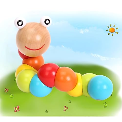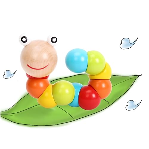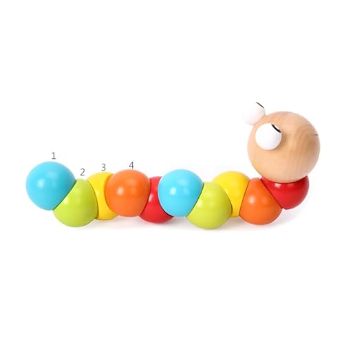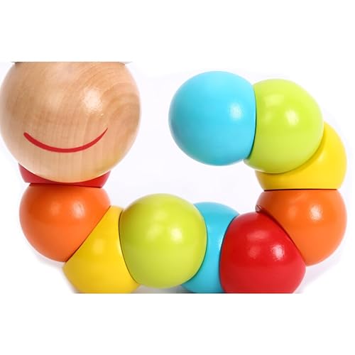 لعبة دودة زاحفة - لعبة خشبية تعليمية للأطفال الصغار، لعبة تنمية الأصابع بألوان قوس قزح، لعبة آمنة وممتعة لتعزيز المهارات المبكرة للأطفال الصغار