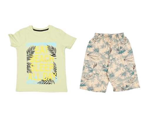 طقم شورت نصف كم من القطن للاولاد من بيرفكت بويز، مقاس 8 سنوات - اخضر فاتح TV-413-204