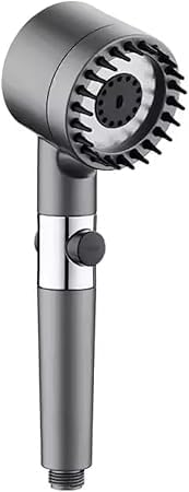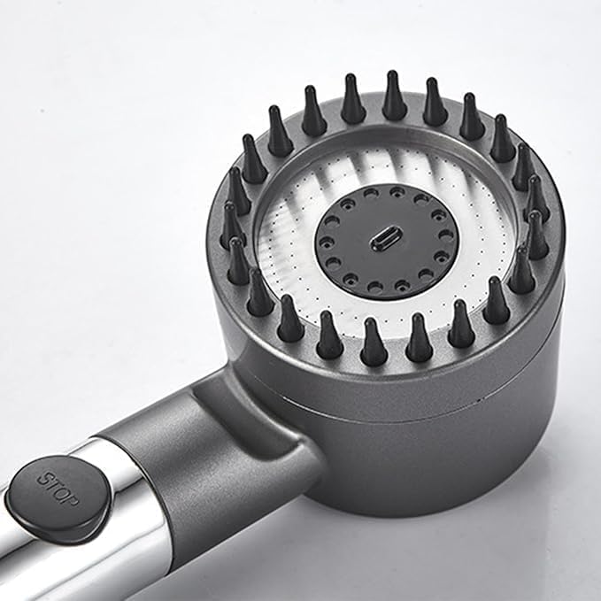 دش محمول عالي الضغط مع رأس بـ 3 أوضاع رش ومفتاح للتشغيل والإيقاف، رمادي