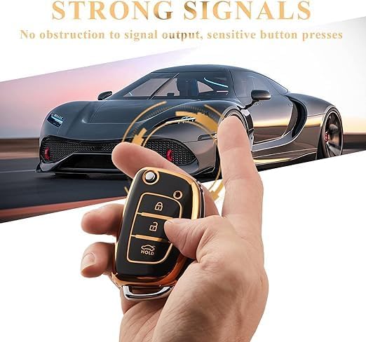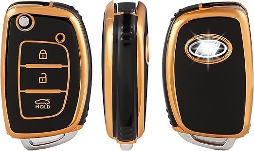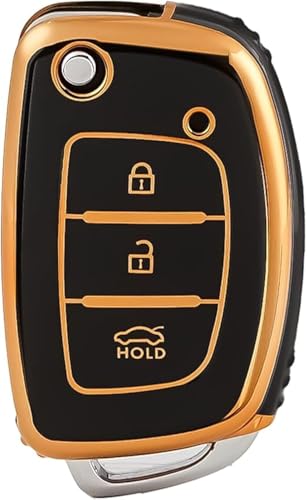 غطاء حماية لمفتاح السيارة من 3 ازرار متوافق مع هونداي i10 i20 i30 كوبيه iX20 ix25 iX35 ix45 كونا سانتا في اكسنت النترا، أسود ذهبي، البولي يوريثين الحراري من يوشوب
