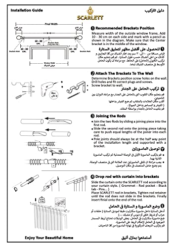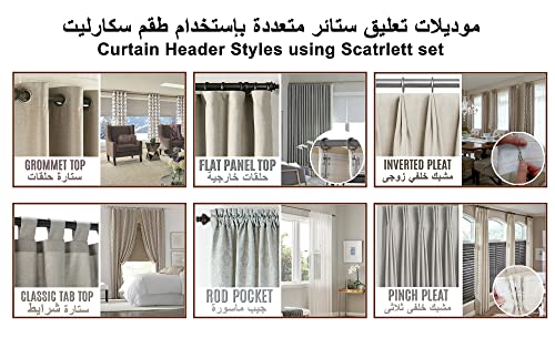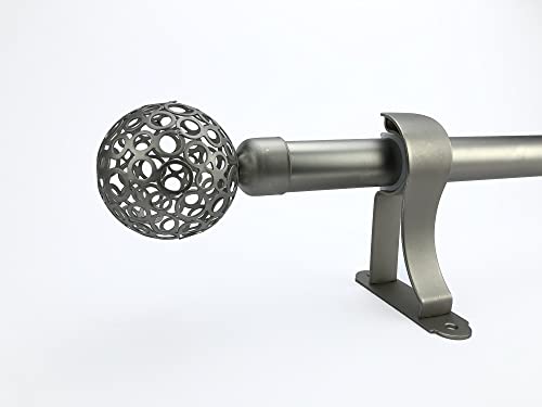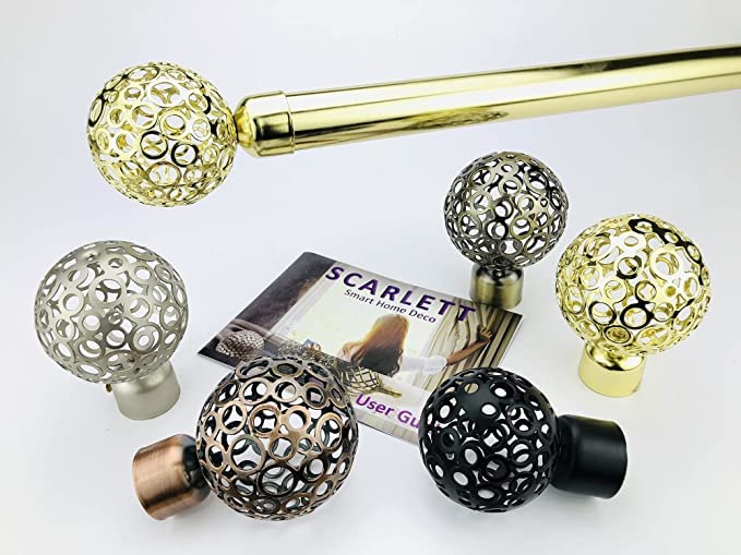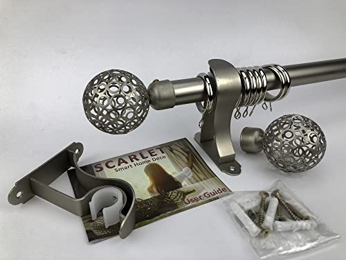 طقم ماسورة ستارة Curtain Rod Single / سكارليت طقم مواسير ستائر الطول 2 متر/ لتعليق ستارة طبقة واحدة / تاج ديكور كروى يناسب (عرض نافذة من 110 سم حتى 170 سم, فضى)