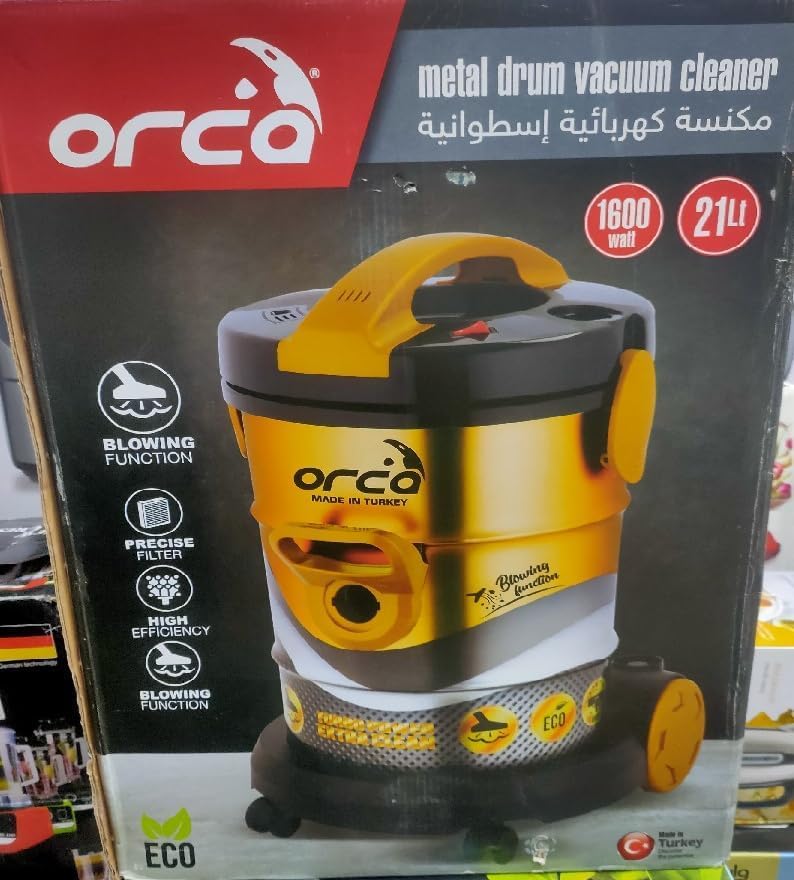 - مكنسة كهربائية أسطوانية صناعة تركية 1600 وات من اوركا بخزان 21 لتر وسلك كهرباء طويل، فلتر قماشي قابل للإزالة والغسل، متعددة الألوان -or-dvc602