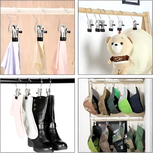 - مثالية للاستخدام الداخلي والخارجي، يمكن استخدام هذه المشابك متعددة الوظائف لتعليق الأحذية الطويلة والجواكيت والملابس الداخلية والطواقي وشنط اليد والفوط والشرابات والجوانتي والمناديل. يتيح لك تصميمها البسيط والعملي تنظيم ممتلكاتك الشخصية بسهولة، مما يجعلها إضافة أساسية لحلول الغسيل والتخزين الخاصة بك.