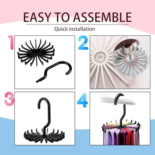 شماعة منظم دولاب 360 درجة مع خطافات، شماعة دوارة موفرة للمساحة لحمالات الصدر والسكارفات وربطات العنق، ملحق منظم دولاب الملابس من اريكسول